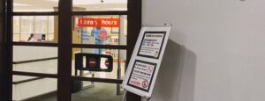 Để ra vào thư viện, sinh viên phải dùng thẻ sinh viên qua cổng.